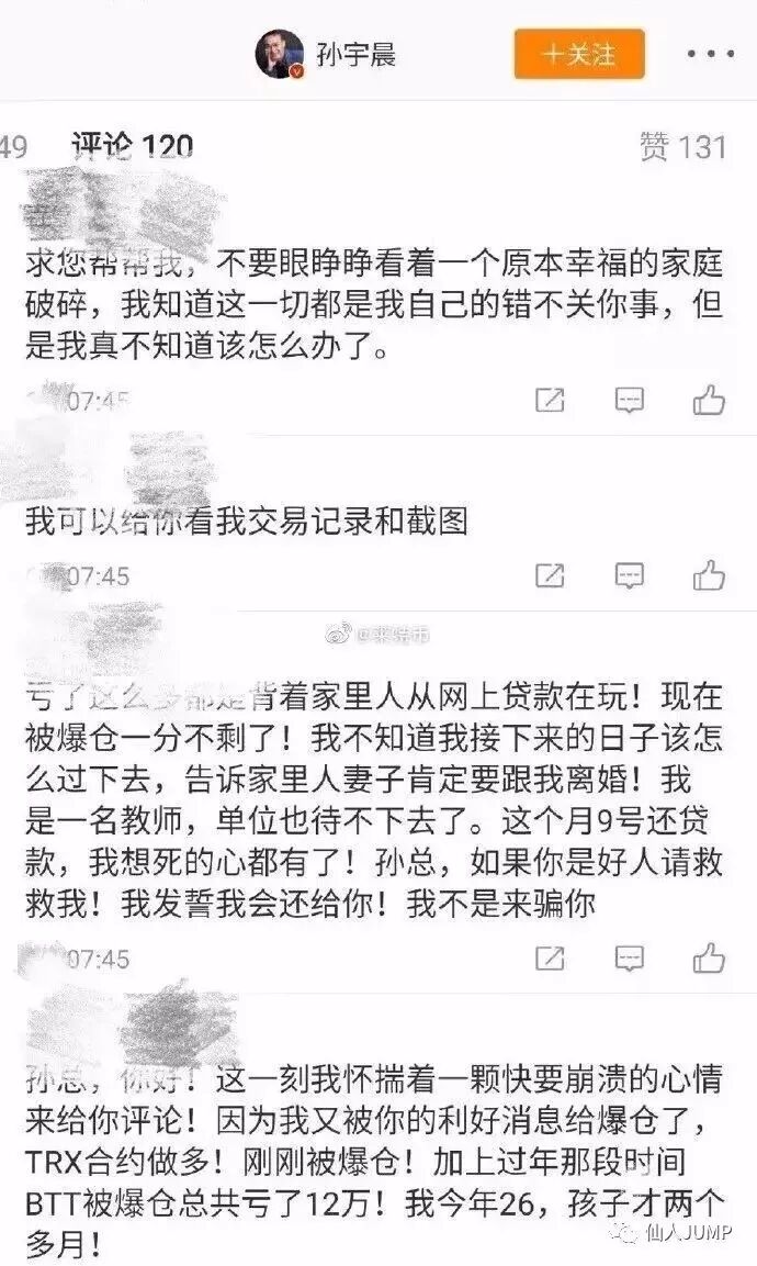 動不動幾千萬人民幣買一頓飯的財富,全部來自於那群相信孫宇晨的散戶。