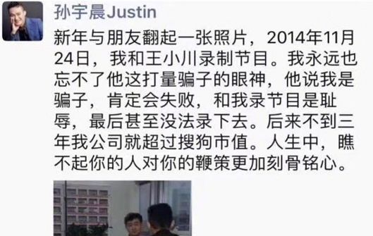 他發了個朋友圈,用一種狀元還鄉的語氣公開DISS搜狗的CEO王小川。