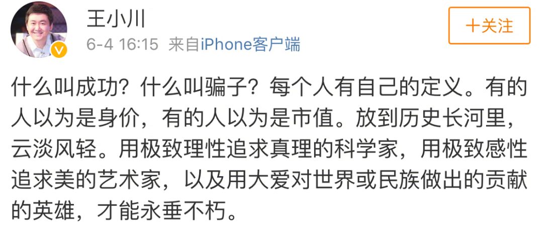 王小川哪能忍的下這個,公開回擊,騙子賺了再多錢,還是騙子。