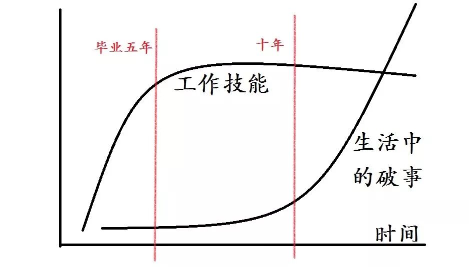 也就是說,技能在畢業五年之後,將達到巔峰水平,大概在27歲左右,所以27、34之間,對於技術出身的職業,比如碼農,工資一般會達到最大值,但是一旦過了那個線,迅速就會出現一種狀態,叫「懈怠」。