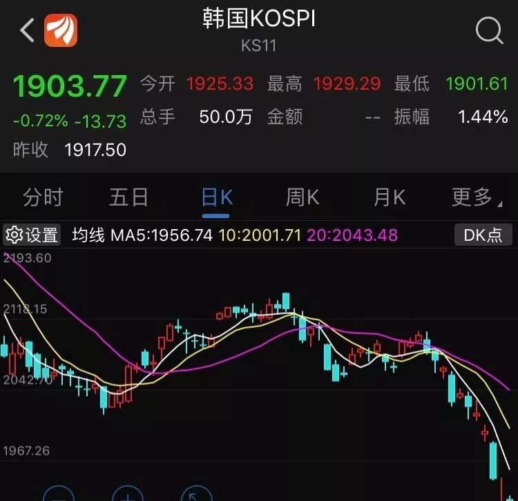 在股票市場,韓國KOSPI股指大跌,金融市場不說廢話,用腳投票。