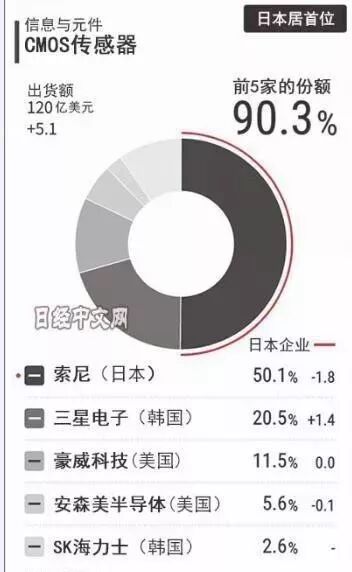 有數據顯示,全球CMOS圖像感測器價值120億美元,其中索尼的市場份額達到了50.1%,獨家控制了全球一半的份額。