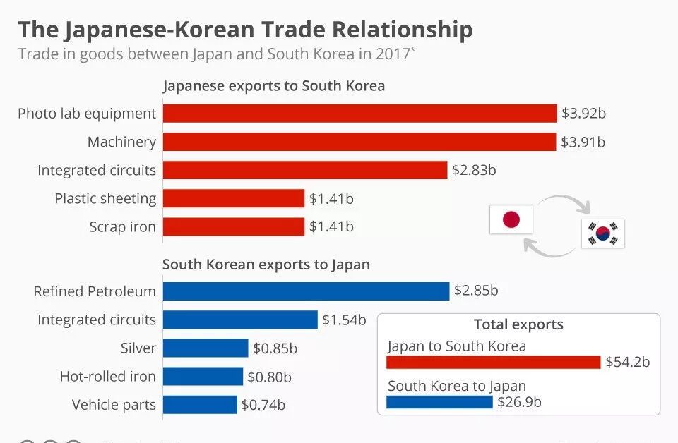對於韓國而言,日本曾經是最重要的貿易合作夥伴之一,在韓國重工業崛起初期,日本曾起了很大作用。